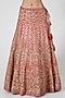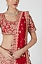 Featuring a red lehenga in raw silk base with cancan and gota embroidery. It is paired with a matching blouse and a net dupatta.