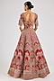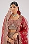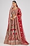 Featuring a red lehenga in raw silk base with embroidery. It is paired with an embroidered blouse and two embroidered dupattas. Accentuate this designer lehenga with polki jewellery, a floral low bun and block heels for a perfect bridal look, ideal for a wedding or engagement ceremonies.