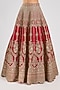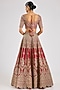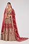 Featuring a red lehenga in raw silk base with embroidery. It is paired with an embroidered blouse and two embroidered dupattas. Accentuate this designer lehenga with polki jewellery, a floral low bun and block heels for a perfect bridal look, ideal for a wedding or engagement ceremonies.