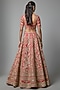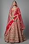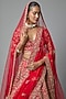 Featuring a red lehenga in raw silk base with embroidery. It is paired with an embroidered blouse and two dupattas. Accentuate it with kundan polki jewellery, a sleek bun and block heels for a wedding or engagement ceremony.
