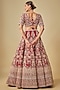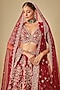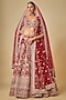 Featuring a red lehenga in raw silk base with zardosi hand embroidery. It is paired with a blouse and two net dupattas. Accentuate it with statement jewellery, a clutch and heels, perfect for weddings or a bridal look.