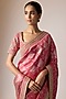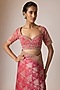 Featuring a red saree in tissue base. It is paired with a blouse. Accentuate it with statement jewellery and heels for a wedding, engagement or sangeet ceremony.