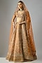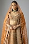 Featuring a rust lehenga in raw silk base with embroidery. It is paired with a blouse and two dupattas. Accentuate it with statement earrings and heels for a bridal look.