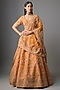 Featuring a rust lehenga in raw silk base. It is paired with a blouse and a dupatta. Accentuate it with traditional kundan or temple jewellery, a soft braided hairstyle or classic bun, and embellished juttis or heels for a timeless ensemble, ideal for wedding, engagement or sangeet ceremonies.