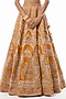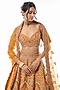 Featuring a rust lehenga in raw silk base. It is paired with a blouse and a dupatta. Accentuate it with traditional kundan or temple jewellery, a soft braided hairstyle or classic bun, and embellished juttis or heels for a timeless ensemble, ideal for wedding, engagement or sangeet ceremonies.