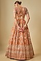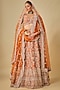 Featuring a rust lehenga in raw silk base with hand and machine embroidery. It is paired with a blouse and two dupattas. Accentuate it with statement jewellery, a clutch and heels, perfect for weddings or a bridal look.