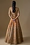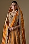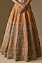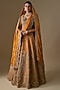 Featuring a rust lehenga in raw silk base with zardosi hand embroidery. It is paired with a blouse and two net dupattas. Accentuate it with statement jewellery, a clutch and heels, perfect for weddings or a bridal look.