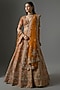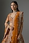 Featuring an exquisite Rust Lehenga crafted in a raw silk base, adorned with zari hand and machine embroidery. It is paired with a finely embroidered blouse and an embroidered dupatta. Elevate this designer ensemble with kundan polki jewellery, a floral hairdo, and embellished block heels for a striking bridal look, perfect for weddings or engagements ceremonies.