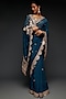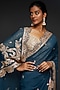 Featuring a teal blue saree in pure organza base with resham, cutdana, and sequins embroidery. It is paired with a contrasting beige embroidered blouse.