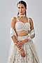 Featuring a white lehenga in net base with sequins, cutdana, zardosi hand and machine embroidery. It is paired with an embroidered blouse and an embroidered dupatta. Accentuate the designer lehenga set with pearl or swarovski jewellery, embellished heels and a potli bag for bridal look, Perfect for your wedding, sangeet or engagement ceremony.