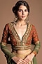 Presenting a luxurious beige lehenga in silk, dola silk, and viscose has intricate floral embroidery, complementing the look with a contrasting blouse and a dupatta. Style the look with dangler earrings or an elegant necklace and make it a perfect fit for a sangeet, bridesmaid, or trousseau look.