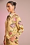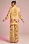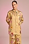 Kalista presents a beige button-down shirt in satin base with floral print. Elevate with pants, metallic heels, subtle gold accessories, and soft curls for effortless elegance, perfect for intimate gatherings, rakhi celebrations, or low-key festive evenings.
