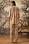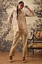 Featuring a light mint green asymmetrical tunic hand painted and printed with floral motifs. It is styled with co-ordinated pants to enhance the relaxed and elegant look.