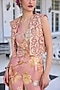 Blush Pink Brocade Floral Printed Jumpsuit With Jacket