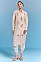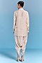 Kalista presents a cream shirt in silk base with sequins and floral embroidery. It is paired with viscose dhoti pants. Elevate with metallic heels, subtle gold accessories, and soft curls for effortless grace, perfect for intimate get-togethers, rakhi celebrations, or low-key festive evenings.