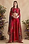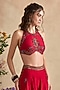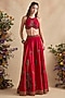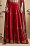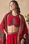 Featuring a crimson pink corset in viscose silk base with thread and zari hand embroidery. It is paired with viscose silk flared sharara pants and a multi-colored net cape. Accentuate it with polki jewellery and heels for festive celebrations or sangeet ceremony.