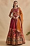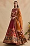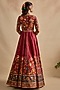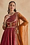 Featuring a crimson red jacket style anarkali in viscose silk and tulle base with floral hand embroidery. It is paired with an orange dupatta. Accentuate it with jewellery and heels for festive celebrations or wedding ceremony.