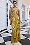 Golden Yellow Viscose Georgette Floral Printed Draped Saree Set