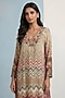 Kalista showcases an ivory jalabiya maxi dress in viscose crepe base with a V-neckline and floral print. Style it with mules, minimal stud earrings and a tote bag for an effortless look. Ideal for a travel, brunch or summer outings.
