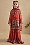 Crimson & Orange Viscose Georgette Gharara Set For Girls