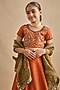 Tangerine Raw Silk Sequins Work Lehenga Set For Girls
