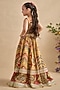 Yellow & Multi-Colored Viscose Silk Floral Motifs Printed Lehenga Set For Girls