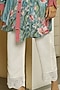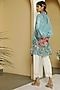 Featuring a light blue tunic in viscose crepe base with tropical print flowers. It is paired with contrasting white straight pants having lace detailing.