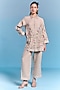 Kalista presents a light grey shirt in cotton linen base shirt with floral hand embroidery. Elevate with pants, metallic heels, subtle gold accessories for effortless grace, perfect for intimate get-togethers, rakhi celebrations, or low-key festive evenings.
