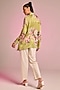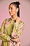 Kalista presents a light olive green button-down shirt tunic in satin base with floral print. Elevate with pants, metallic heels, subtle gold accessories, and soft curls for effortless elegance, perfect for intimate gatherings, rakhi celebrations, or low-key festive evenings.