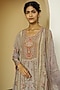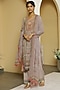 Featuring a lilac kurta in crepe base with embroidery and geometric floral print. It is paired with matching straight pants and a georgette dupatta.