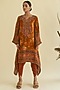 Featuring a maroon kaftan tunic in viscose crepe base with floral print. It is paired with matching tulip pants.