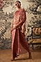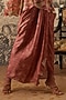 Featuring a mauve pink floral printed tunic set with a relaxed silhouette and elasticated smocked cuffs. It is styled with a contemporary pre-draped skirt pleated in the centre front.