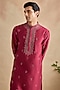 Featuring a magenta kurta in chanderi silk base with thread embroidery. It is paired with churidar pants. Accentuate it with neutral mojaris or classic kolhapuri-style footwear and a sleek watch for a refined finish, ideal for festive gatherings or family functions.