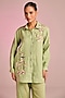 Kalista presents a mint green shirt in cotton linen base shirt with thread, sequins and floral embroidery. It is paired with pants. Elevate with metallic heels, subtle gold accessories, and soft curls for effortless grace, perfect for intimate get-togethers, rakhi celebrations, or low-key festive evenings.