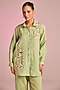 Mint Green Cotton Linen Floral Embroidered Shirt