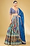 Featuring a multi-colored lehenga in raw silk and tissue georgette base. It is paired with a blouse and a dupatta. Accentuate it with jewellery, heels and a clutch for wedding or sangeet ceremonies.