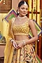 Kalista features a mesmerizing Multi-Colored Lehenga Set that captivates with its elegant print. The eye-catching lehenga is crafted in silk with hand adda work, including gota, beads and sequins embroidery. It is paired with a blouse and a dupatta. Accessorize the designer lehenga set with statement earrings and heels for weddings or haldi ceremonies, showcasing style and sophistication.