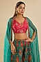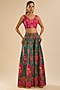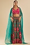 Featuring multi-colored sharara pants in viscose silk base with print. It is paired with a blouse and a dupatta. Accentuate it with jewellery and heels for a festive occasion, haldi or sangeet ceremony.
