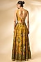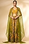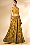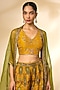 Featuring mustard and green sharara pants in viscose silk base with print. It is paired with a blouse and a dupatta. Accentuate it with jewellery and heels for a festive occasion, haldi or sangeet ceremony.