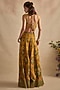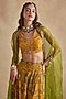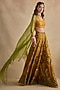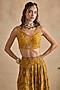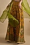 Featuring a mustard yellow blouse in viscose silk base with sequins embroidery. It is paired with viscose silk flared sharara pants and a lime green organza cape. Accentuate it with polki jewellery and heels for festive celebrations or haldi ceremony.