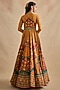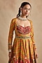 Featuring a mustard anarkali in viscose silk base with thread and beads hand embroidery. It is paired with a multi-colored tulle dupatta. Accentuate it with polki jewellery and heels for festive celebrations or haldi ceremony.