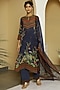 Featuring a navy blue kurta in crepe base with embroidery and tropical printed flowers. It is paired with matching straight pants and a georgette dupatta.