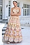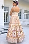 Kalista features a peach vanessa gown in dola silk base with floral print, sequins, and beads embroidery. Perfect blend of style and comfort for the season, capturing the essence of modern sophistication.
