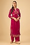 Featuring a pink kurta in silk velvet base with zari and sequins hand embroidery. It is paired with pants. Accentuate statement jewellery and heels for a sangeet or engagement ceremony.