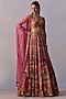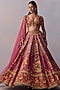 Featuring a pink lehenga viscose silk and tulle with floral motif, bead and sequins hand embroidery. It is paired with an embroidered blouse and a dupatta. Accentuate the designer lehenga with statement jewellery and heels for a wedding, engagement or sangeet ceremony.