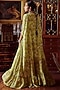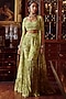 Featuring a pista green bustier in viscose silk base with beads and sequins work. It is paired with matching crepe gharara pants and a cape having printed floral motifs.