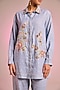 Powder Blue Cotton Linen Floral Embroidered Shirt