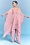 Powder Pink Organza Floral Embroidered Kaftan Set