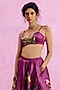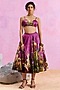 Kalista features a Purple Skirt Set that captivates with its elegance. The eye-catching skirt is crafted in viscose satin with floral print. It is paired with a bustier. This designer set is perfect for that glamorous party look .