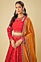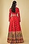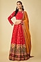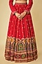 Featuring a red lehenga in chanderi silk base with digital print, including beads and sequins hand embroidery. It is paired with an embroidered silk viscose blouse and a chanderi silk dupatta. Style it with heels, a clutch and statement earrings for weddings or sangeet ceremonies.